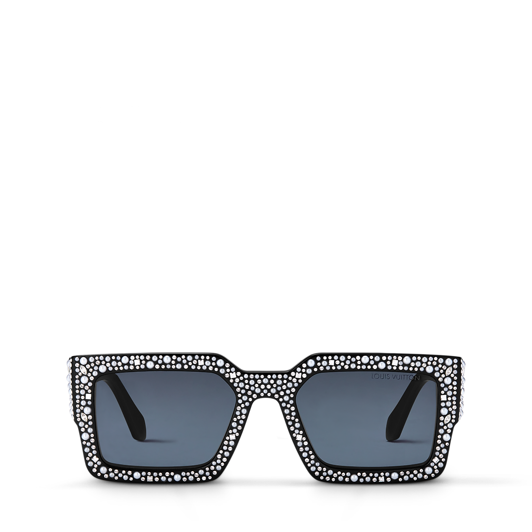 Os óculos de sol LV Clash ganham uma versão exuberante nesta temporada: a armação quadrada feita de acetato preto com mix de cristais e pérolas. O emblema de metal com a assinatura LV Initials que aparece nas hastes não passa despercebido quando os óculos estão em uso.
