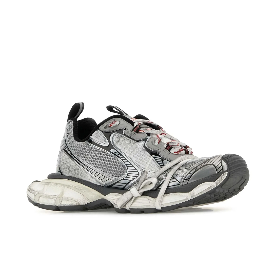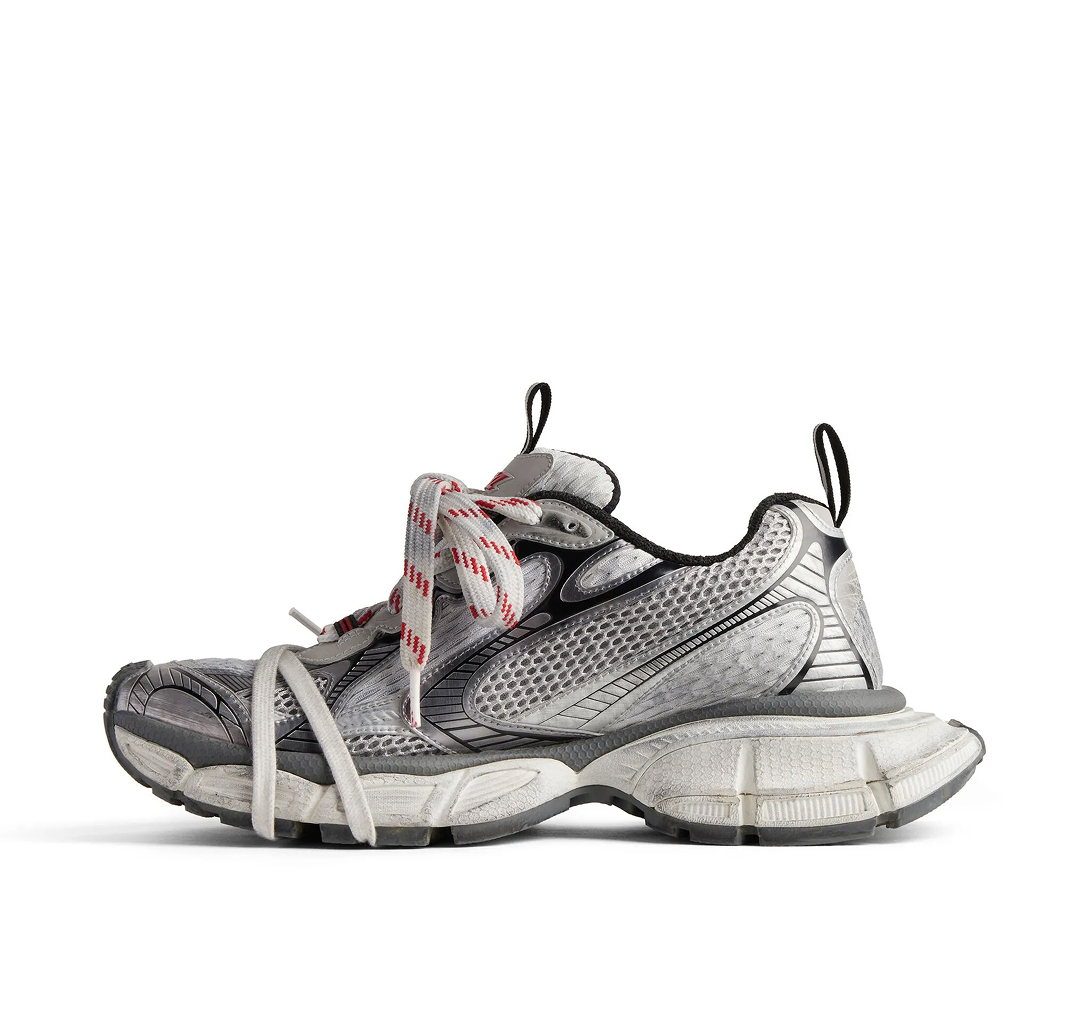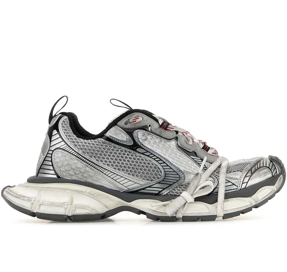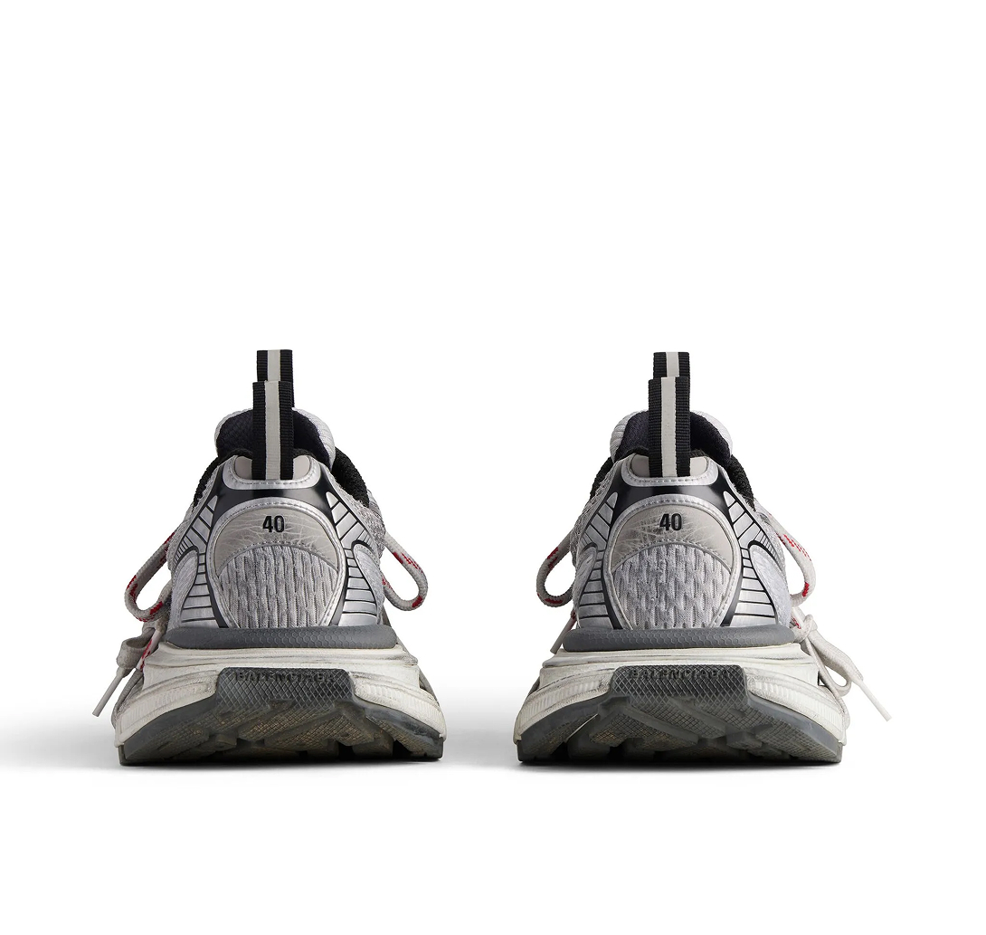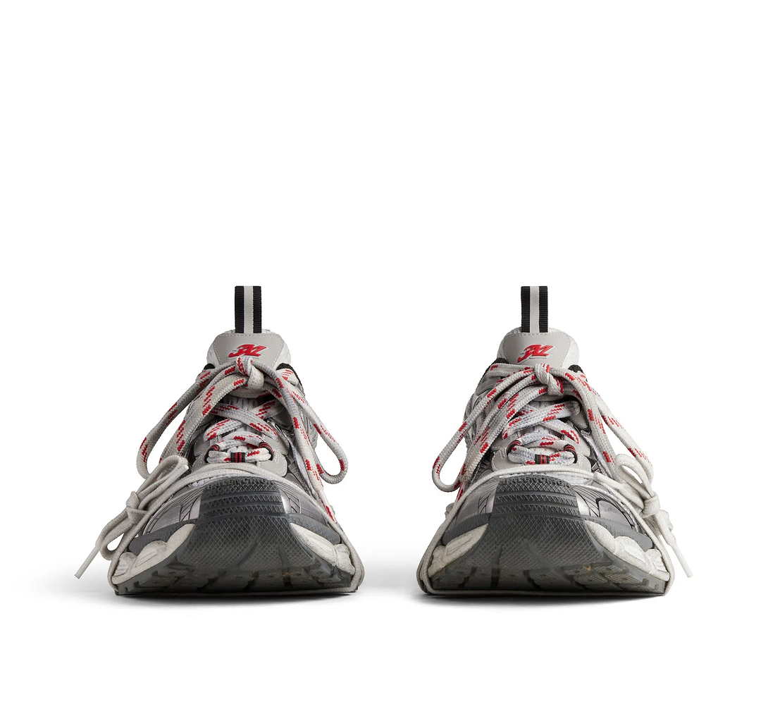 Cinza, prateado, recorte de tela, efeito desgastado, detalhes refletivos, cadarços intercambiáveis, tira dupla na abertura, lingueta com logo gravado, fechamento frontal por amarração, bico arredondado e solado chunky de borracha. Este item foi fabricado por uma marca avaliada com quatro de cinco pontos (Bom) pela Good on You quando foi incluído na FARFETCH. Considere que esta é uma classificação válida para todas as marcas e não garante que este produto seja feito com materiais de origem consciente.