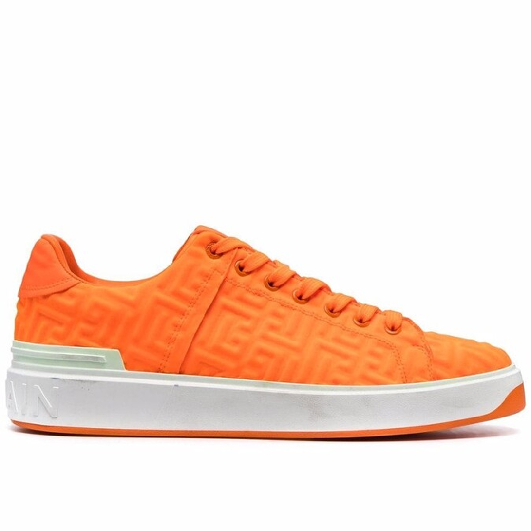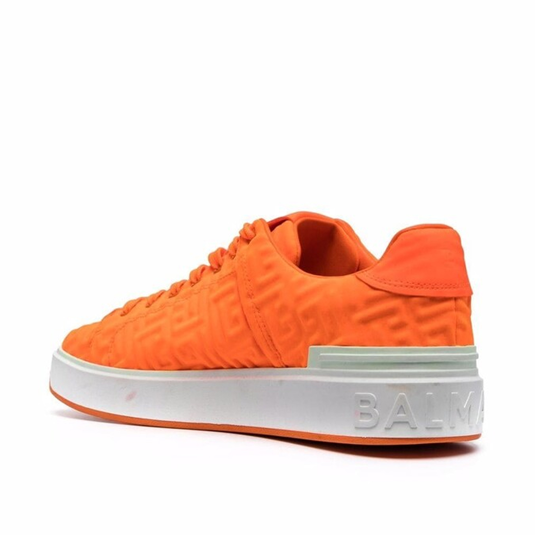O tênis Balmain B-Court Monogram destaca-se pela cor vibrante e o padrão icônico em relevo. Com design casual e acabamento sofisticado, é ideal para compor visuais modernos com personalidade.