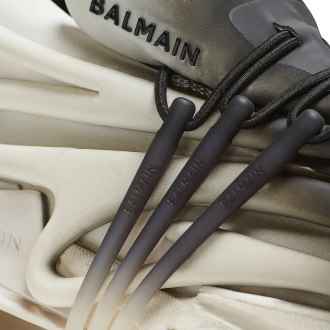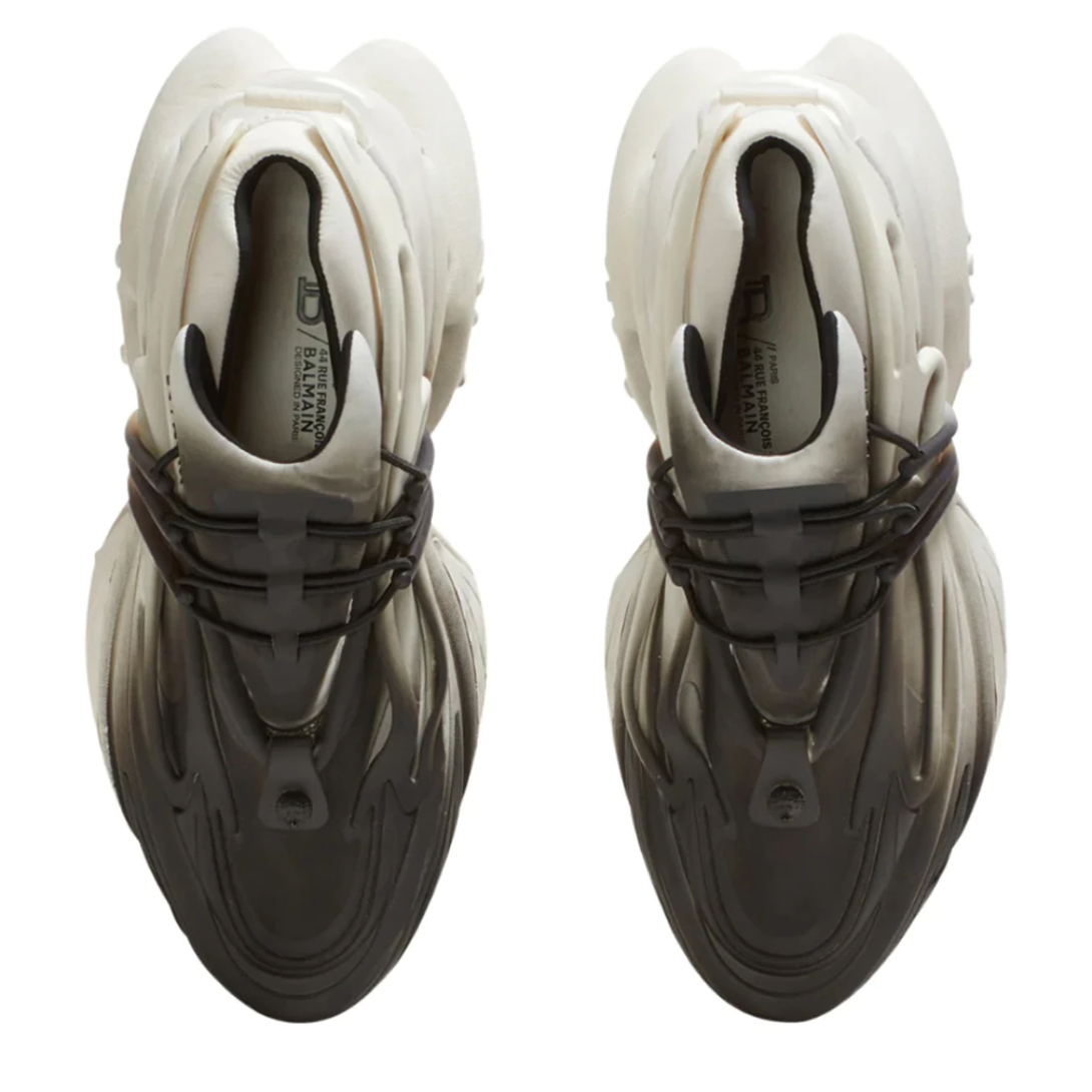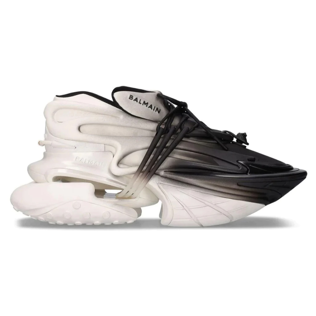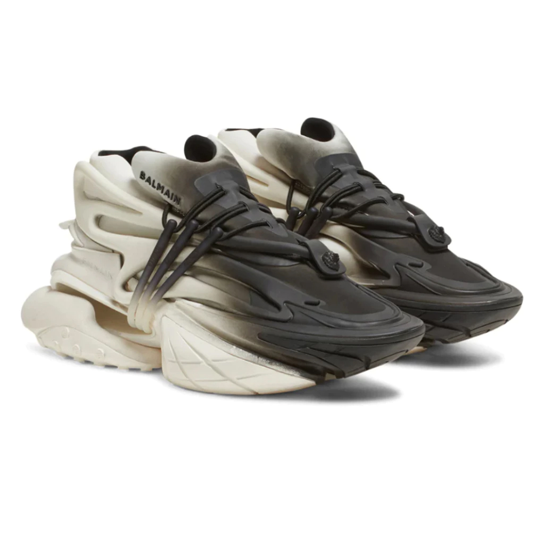 Com design escultural e visual futurista, o tênis Balmain Unicorn é um verdadeiro marco no streetwear de luxo. Esta versão em degradê preto e branco reforça o DNA arrojado da maison, combinando volume, fluidez e detalhes técnicos de forma surpreendente. A entressola robusta, aliada ao cabedal anatômico, garante presença e conforto em cada passo.