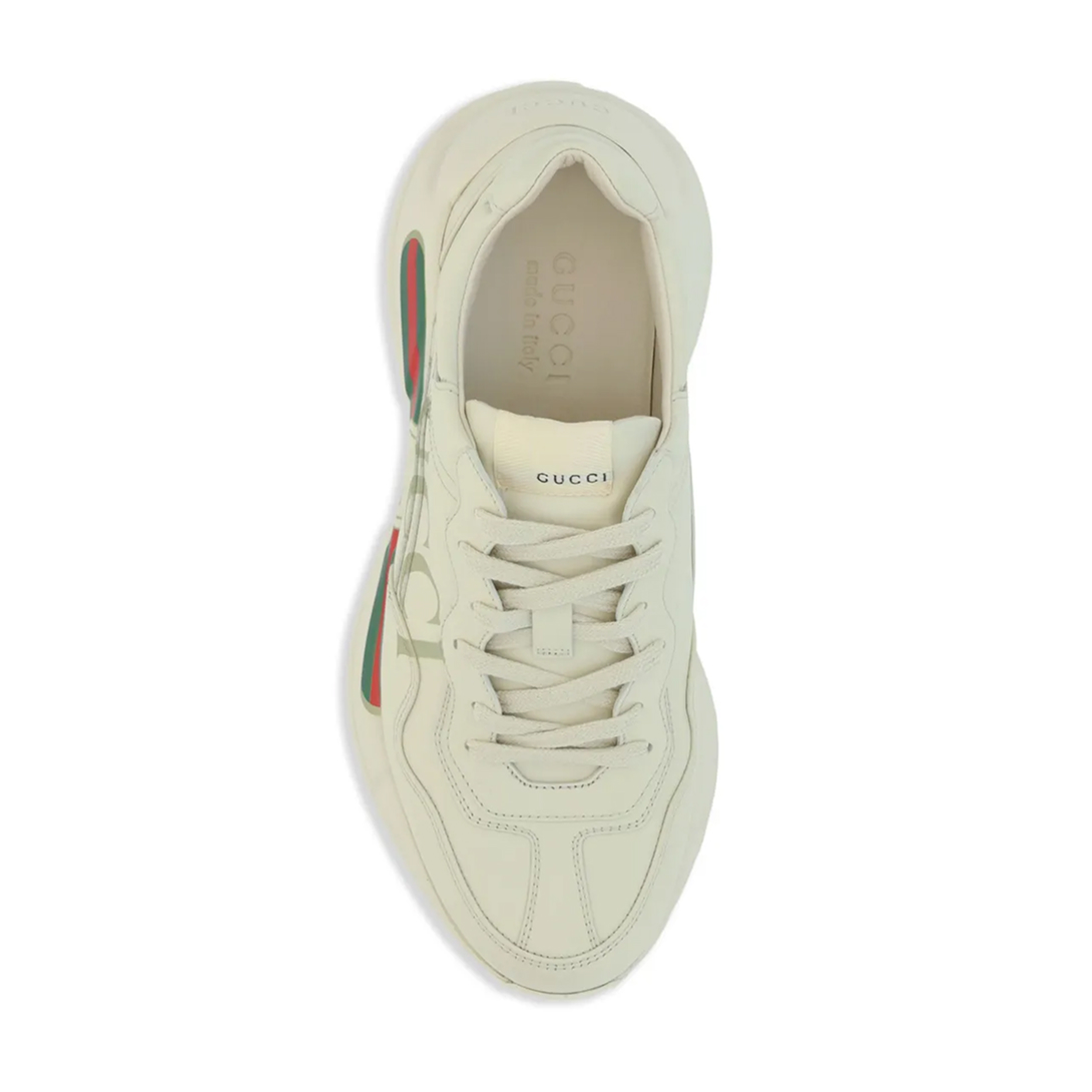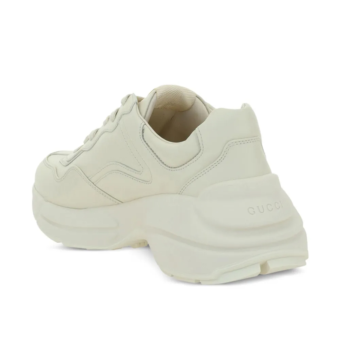 Com visual robusto e identidade marcante, o tênis Rhyton da Gucci incorpora o espírito ousado da maison em uma silhueta icônica. Confeccionado em couro de bezerro, o modelo traz recortes estruturados, logo Double G estampado em destaque e solado chunky de borracha, garantindo presença e conforto. A paleta creme com detalhes em vermelho e verde reforça o DNA da marca, unindo estilo urbano com sofisticação italiana.