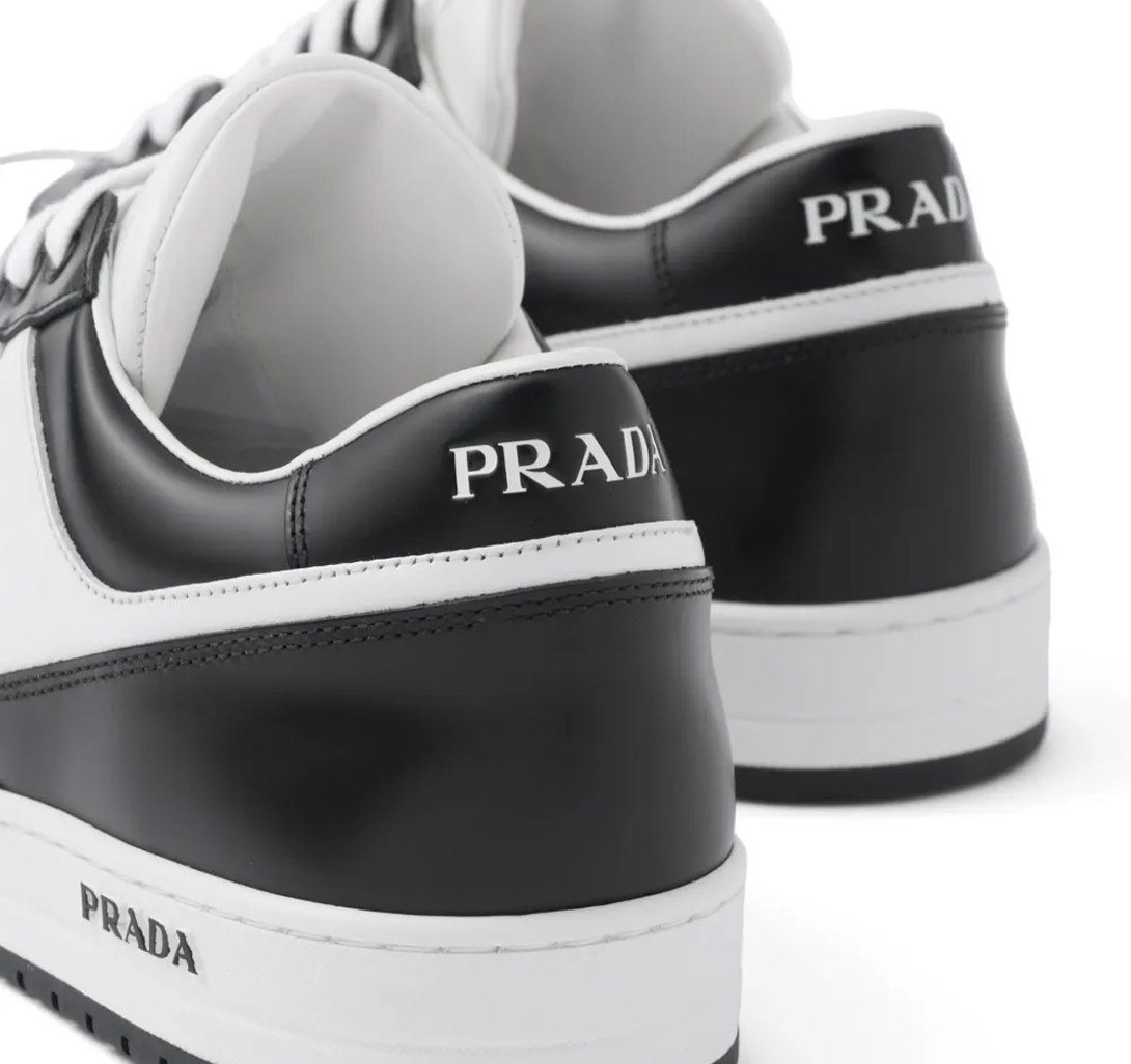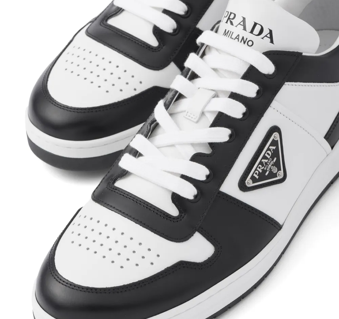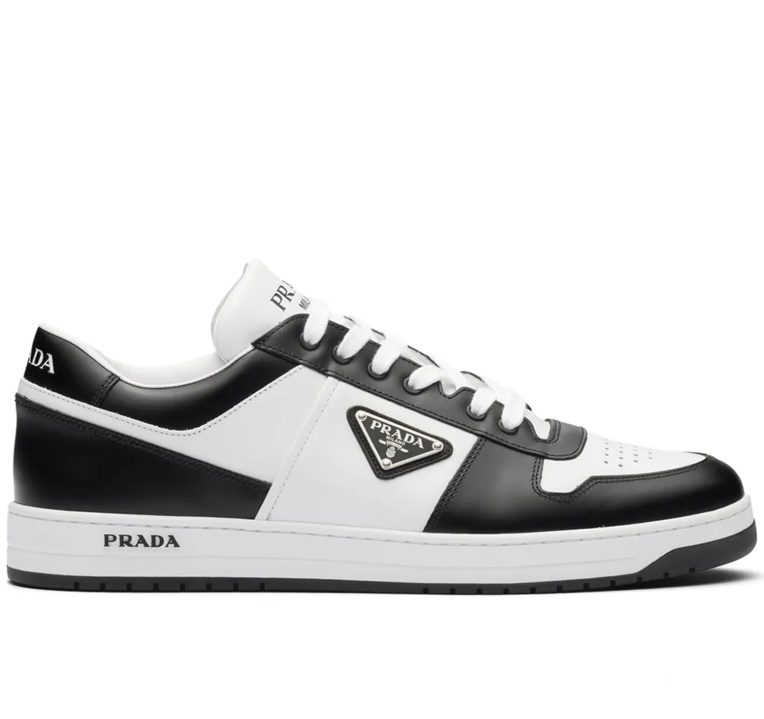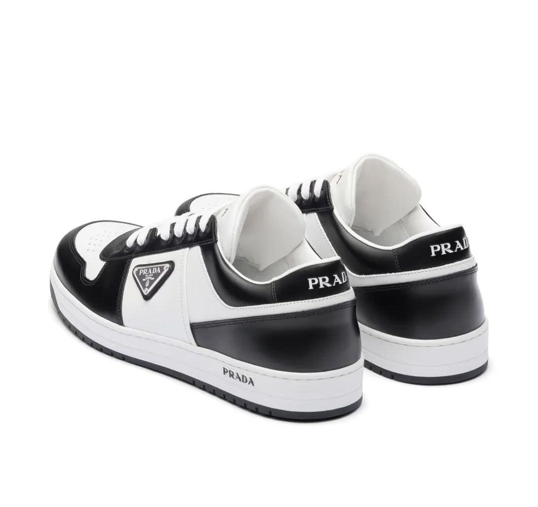 Com design urbano e acabamento sofisticado, o tênis Prada Downtown traz o equilíbrio entre minimalismo e identidade visual marcante. A construção em couro apresenta recortes color-block em preto e branco, enquanto o icônico logo triangular esmaltado e as assinaturas discretas reforçam a autenticidade da marca. O bico perfurado e o solado emborrachado completam o visual com conforto e atitude.